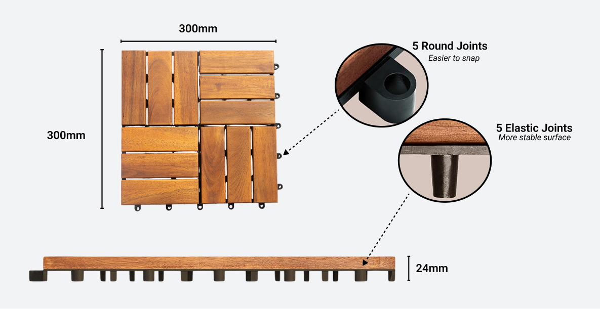 (Best Seller) Brown 12-Slat Acacia Wood Decking Tiles